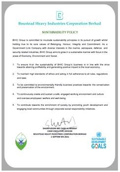 As a Government Linked Company, a listed entity and a major player in Malaysia’s marine, defence and security sectors, BHIC is very much aware of its responsibility to conduct its business in a sustainable manner for its own benefit and for the interest of its stakeholders and the economy, environment and society in which it operates.