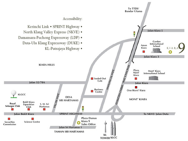 Located in the middle of the Klang Valley, Kiara 9 is only minutes away from other suburbs or major commercial destinations.