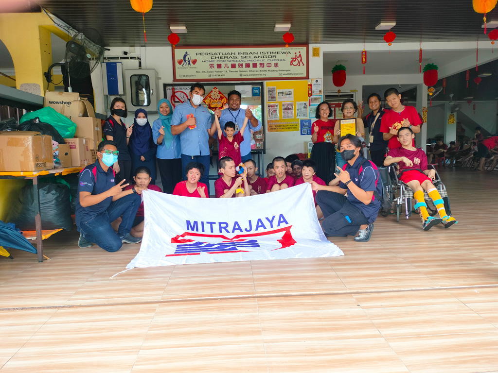 Members of Mitrajaya paid a social visit to a special needs and underprivileged home at Persatuan Insan Istimewa Cheras, Selangor. Mitrajaya contributed a cash donation of RM5,000 to the Centre in support of the special needs community. This Centre provides housing and care for 48 children with various degrees of mental and physical impairments who have been abandoned by their families. Founded in 2009, this non-profit organisation provides children with expert care, rehabilitation programs, specialized treatment, daily living skills training and educational assistance.